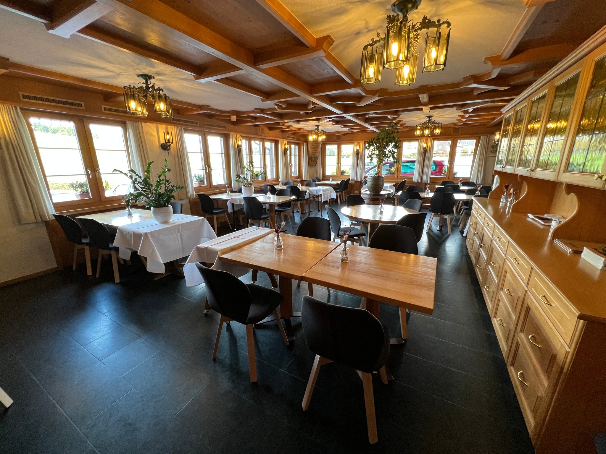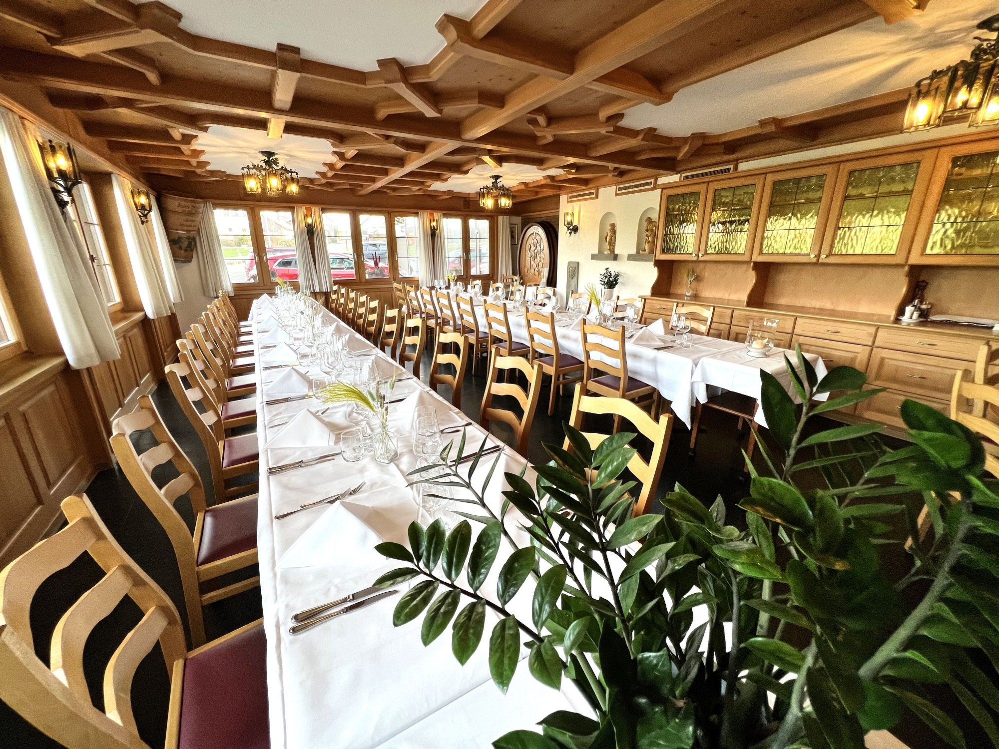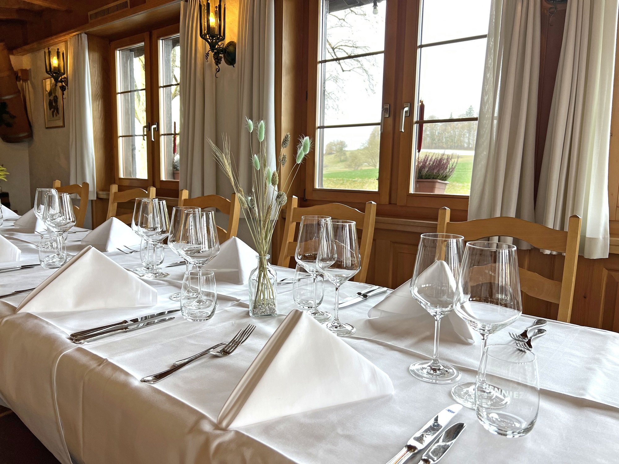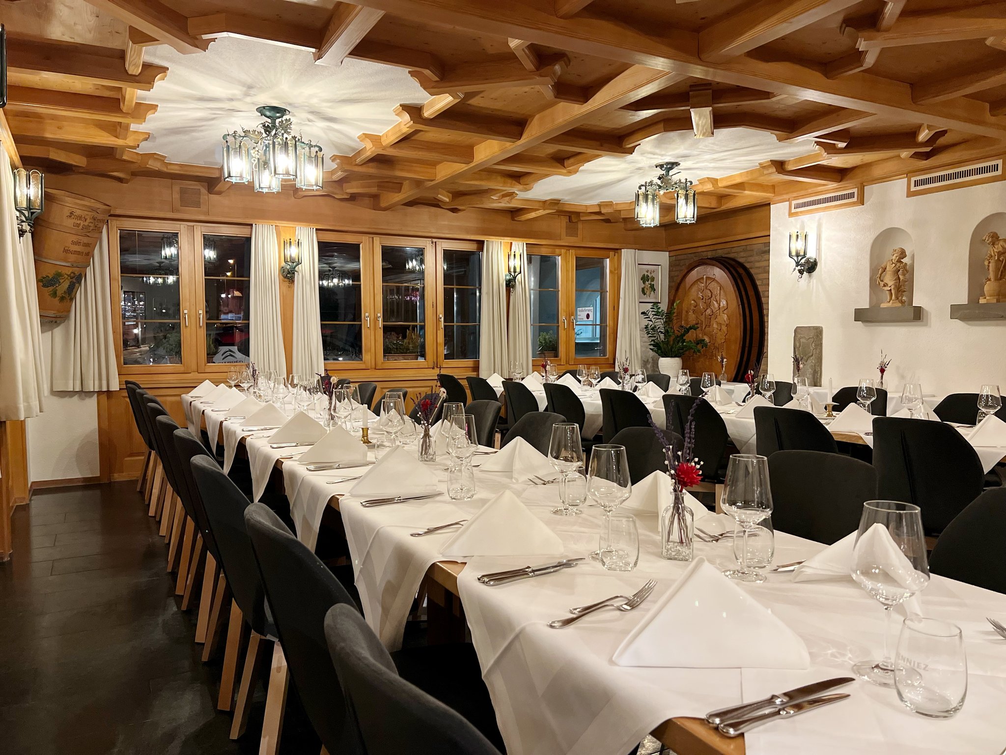 Die heimelige "Winzerstube" lädt zum Wohlfühlen, Verweilen und Geniessen. Dieser gemütlich-elegante Raum bietet Platz für grössere Anlässe